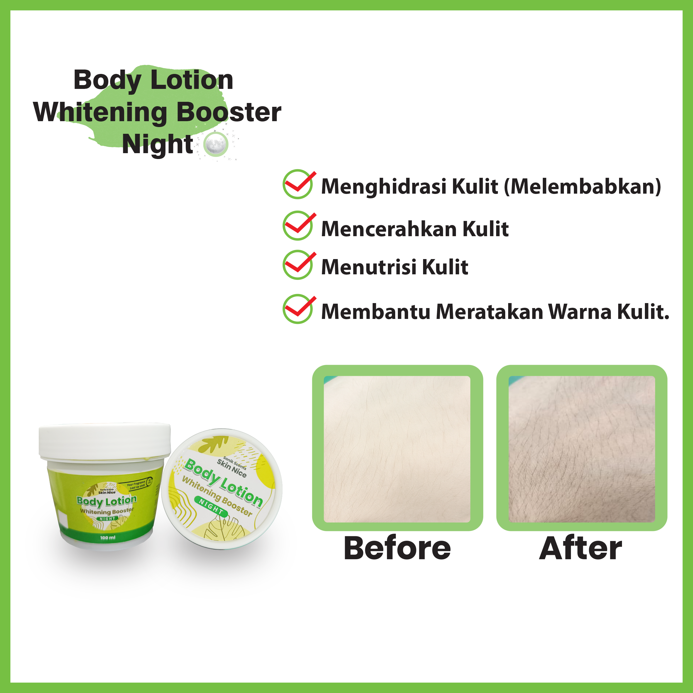 SONIK SCENTS Skin Nice Body Lotion Whitening Booster Night Cream Hijau