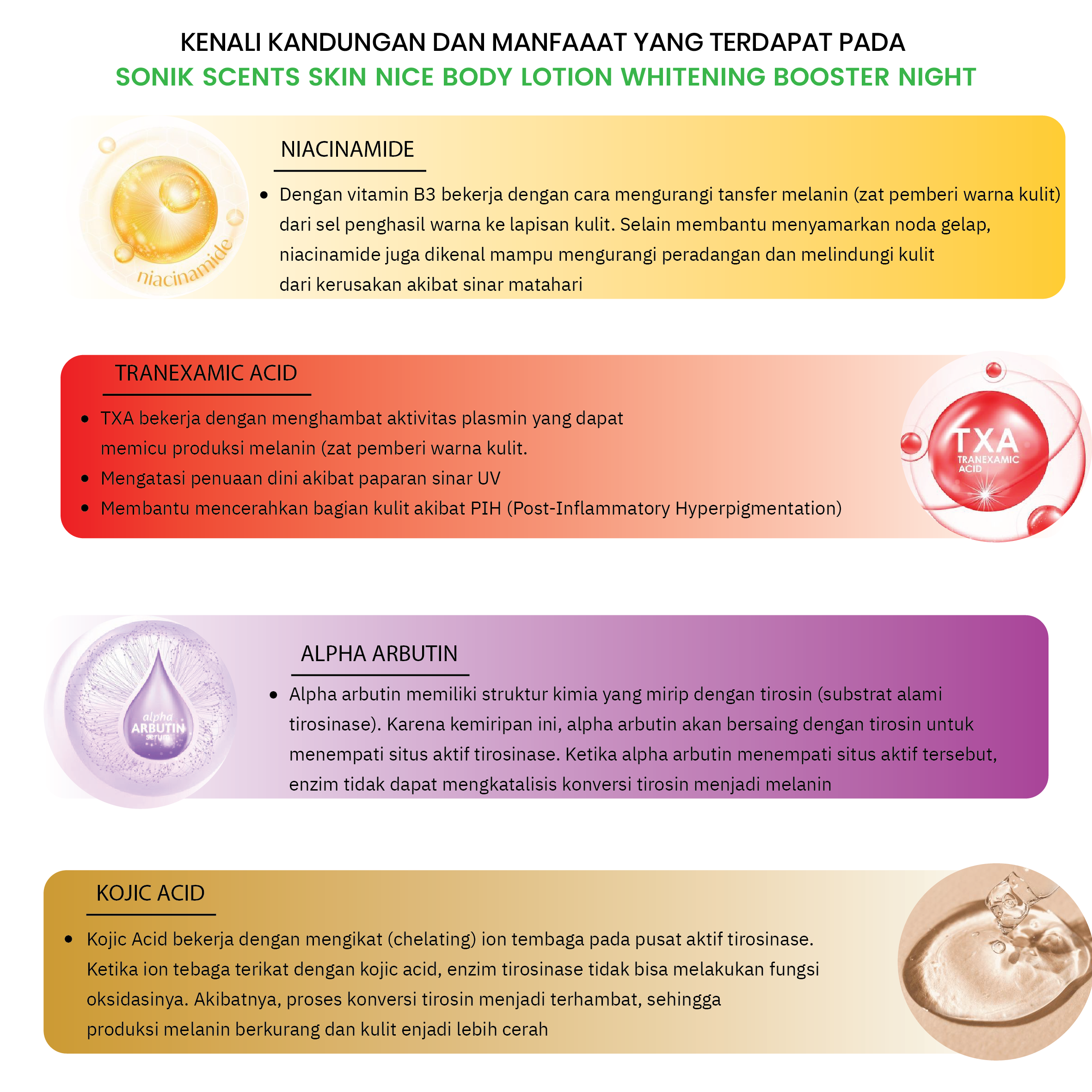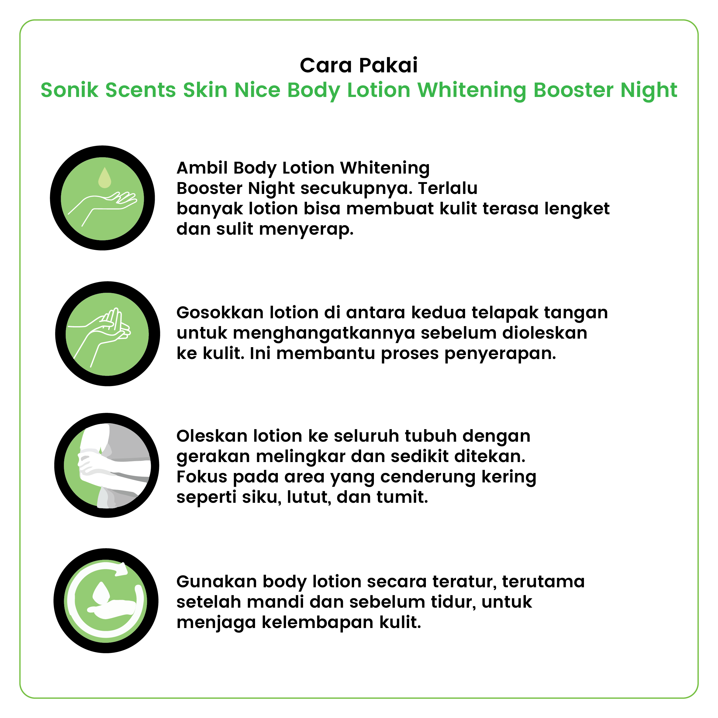SONIK SCENTS SKIN NICE body lotion whitening booster night cream Hijau Vitamin lotion menggabungkan manfaat transformasi kulit dari: